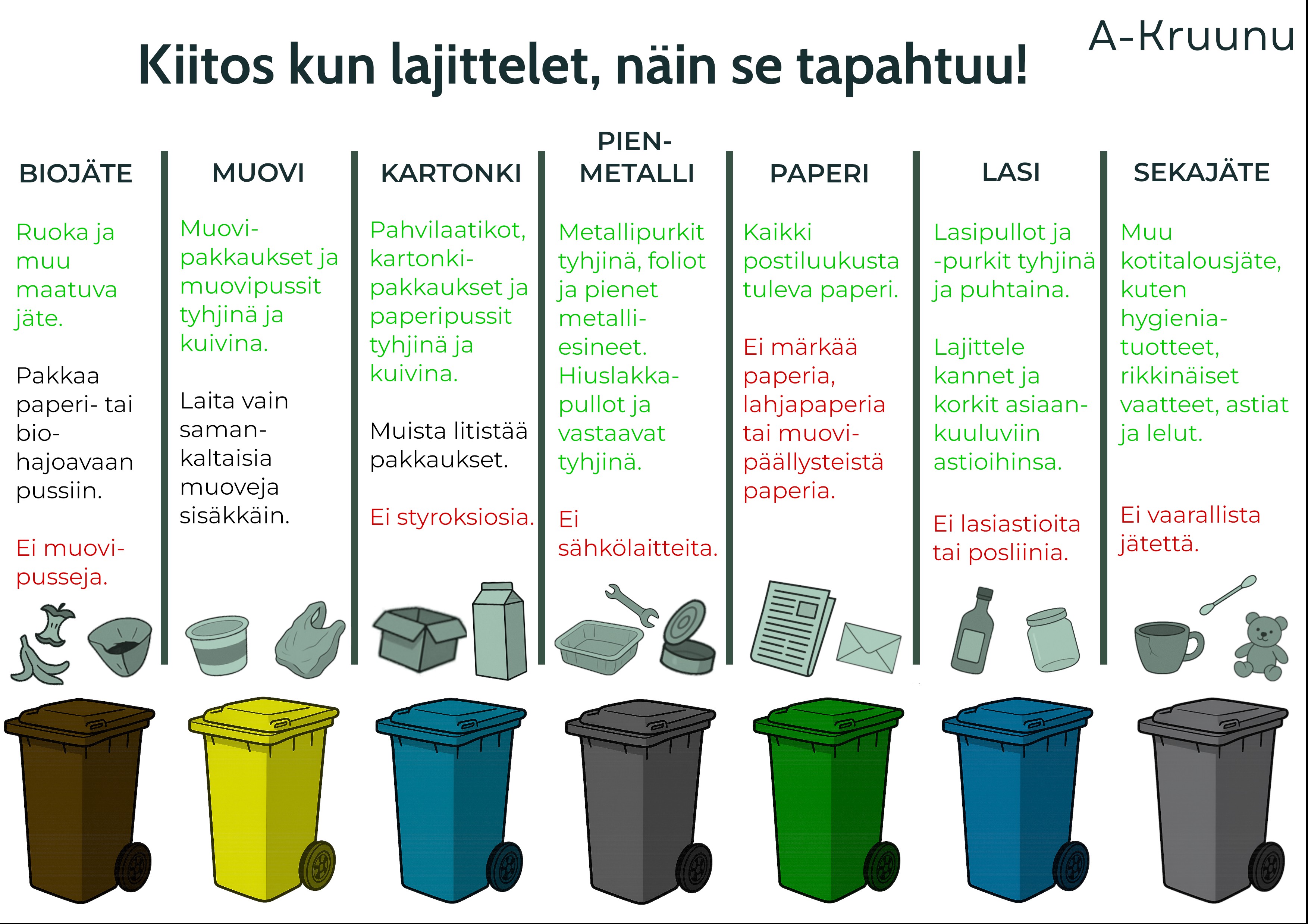 Alta löydät lisää ohjeita jätteiden lajitteluun