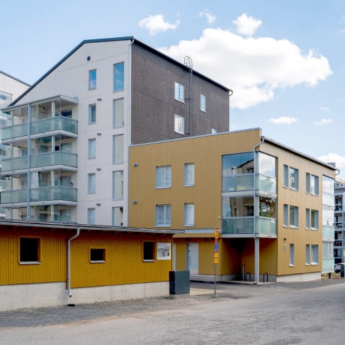 - Yhteistilat sijoittuvat ylimpään kerrokseen, josta on avarat näköalat. Sielläkin on viisaasti tehty kattoterassin sijaan parveke vilvoittelua varten. Asunnot ovat kaiken kaikkiaan onnistuneesti suunniteltuja, ja asuntojakauma on monipuolinen. Koko hanke on osa tiivistävää täydennysrakentamista, jolla tehostetaan Lamminpään alueen maankäyttöä.